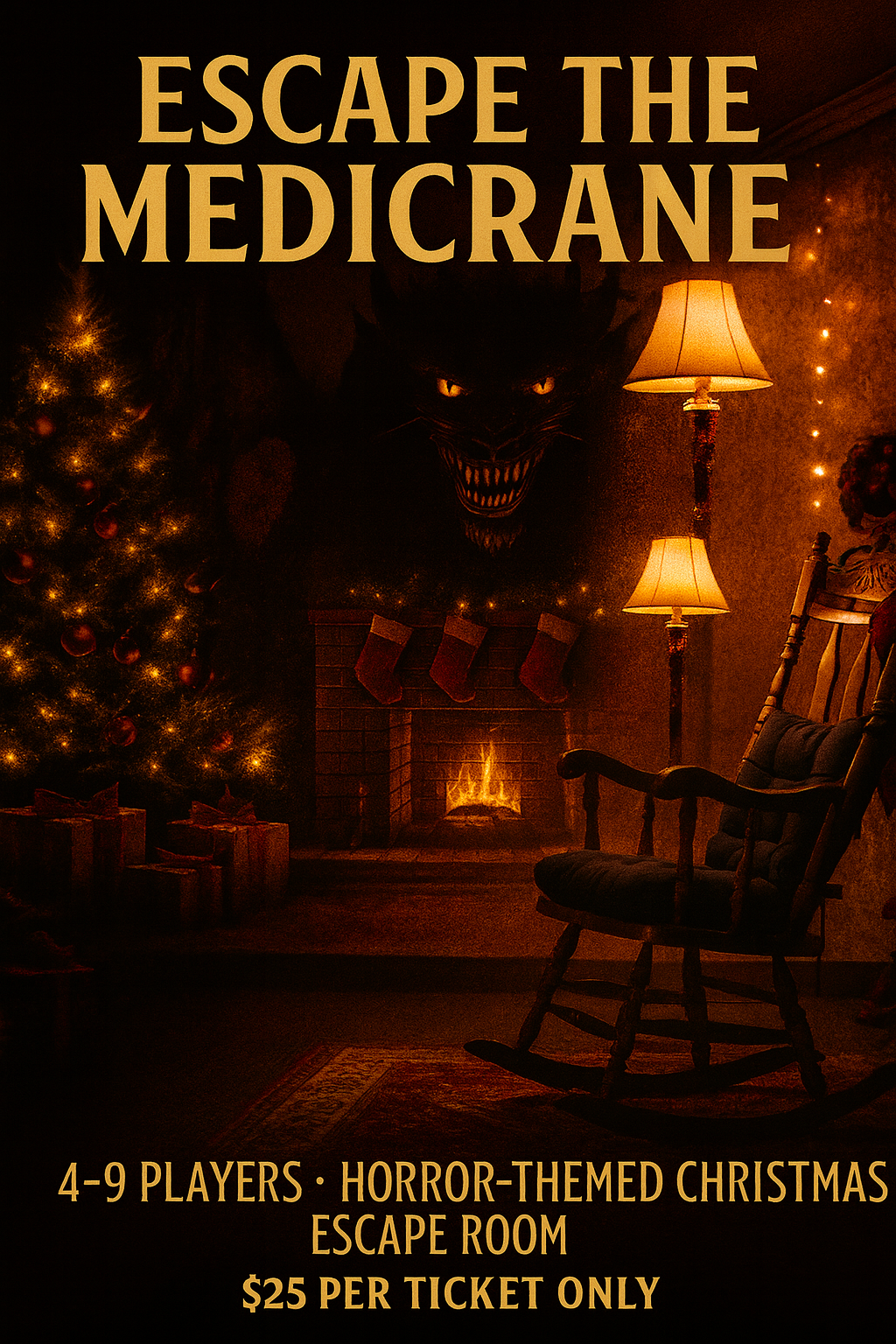 Enter the Medicrane’s lair, uncover his twisted experiments, and solve eerie holiday-themed puzzles to track down Nicholas Claus and save Christmas. Every riddle, gadget, and trap hides another piece of the mystery — can your team stop the Medicrane before time runs out?